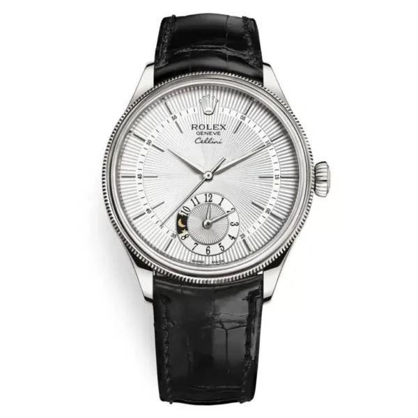 Rolex Cellini Moonphase 50535 White Dial Leather Strap 39mm Watch