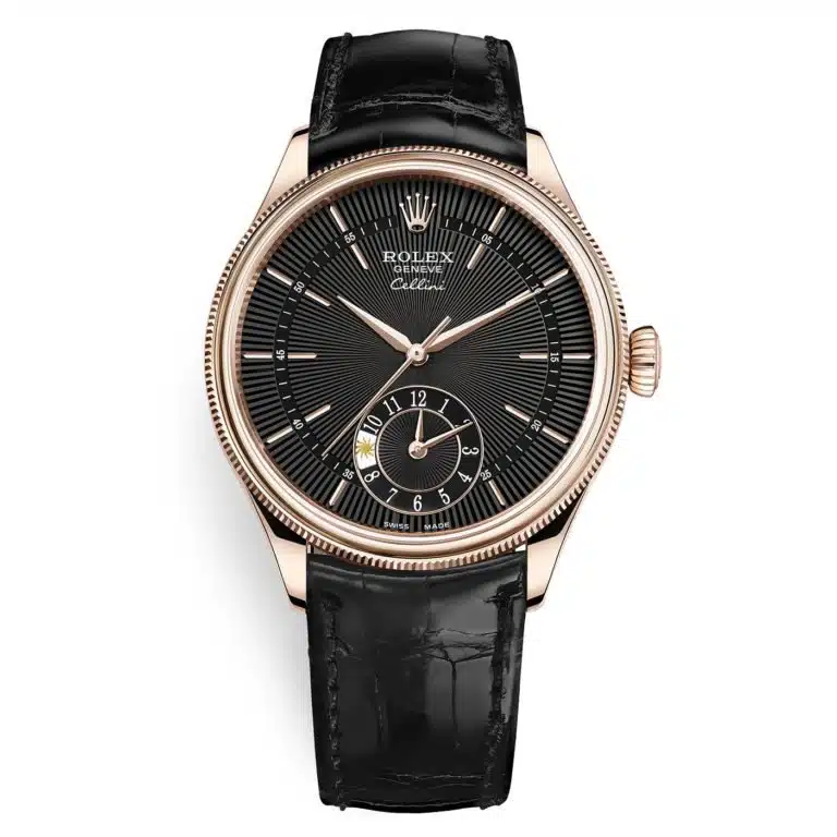 Rolex Cellini 50525 Black Dial Leather Strap Dual Time 39mm Watch