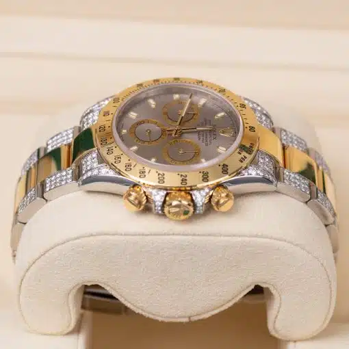 Rolex Daytona 116523 Grey Dial Aftermarket Iced Out Bracelet and Lugs
