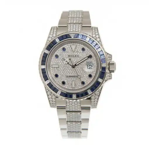 Rolex Submariner Date (ref. 116659SABR) Blue Sapphire and Diamond Bezel Diamond Dial watch features selfwinding movement; diamond dial, blue sapphire and diamond bezel, and white gold oyster bracelet; sapphire crystal, and 40 mm white gold case.